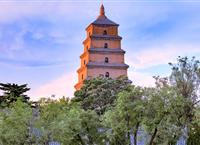 游西安古城,不得不提这大雁塔,大雁塔位于陕西省西安市南郊慈恩寺内,被视为古都西安的象征。有人说:"不到大雁塔,不算到西安。"这座楼阁式砖塔,塔通高64.5米,塔身为七层,塔体呈方形锥体,由仿木结构形成开间,由下而上按比例递减。塔内有木梯可盘登而上。每层的四面各有一个拱券门洞,可以凭栏远眺。整个建筑气魄宏大,造型简洁稳重,比例协调适度,格调庄严古朴,是保存比较完好的楼阁式塔。在塔内可俯视西安古城。这里环境清幽,风景优美,在古城中别有一番韵味。